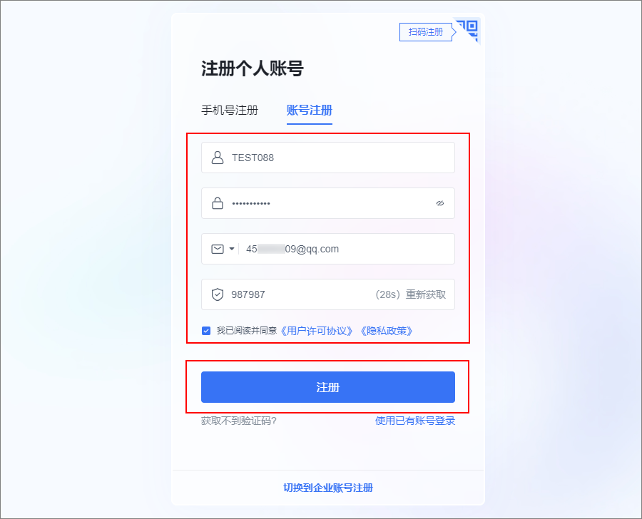 使用账号登录