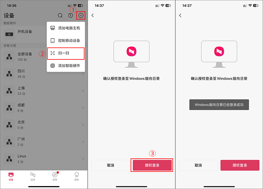 - 批量绑定的操作流程: 管理员需要在每台设备上安装向日葵客户端并获取识别码,然后在控制台中统一输入或导入这些识别码,一键即可批量绑定设备。绑定完成后,所有设备会显示在控制台设备列表中,管理员可以立即查看状态并进行管理,整个流程清晰简便。